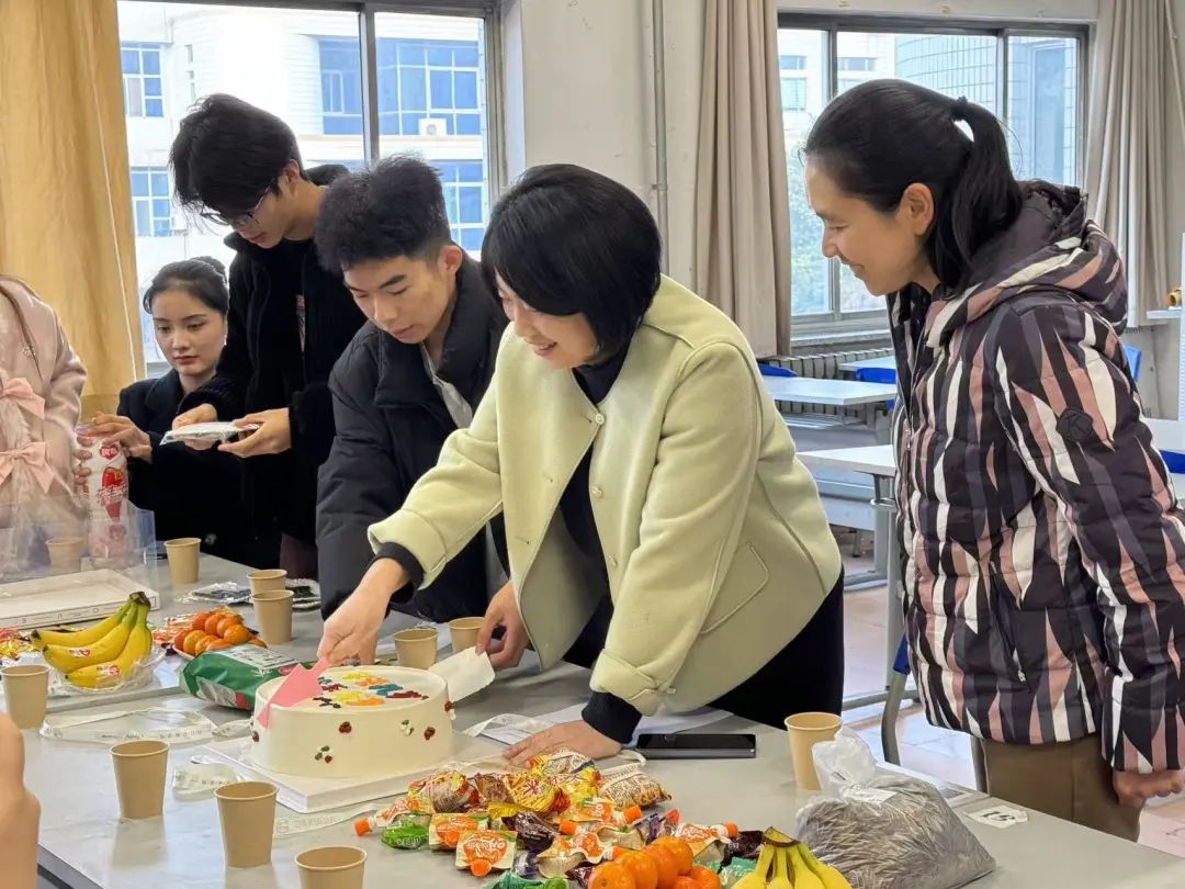 随后,老师们与学子们手执刀叉,将甜蜜的蛋糕切开,零食在指尖传递,欢声笑语此起彼伏。无尽的喜悦在话语间流淌,众人紧密围坐,细数着工作中的点点滴滴,交流着撰写新闻时的那份独特乐趣,场景温馨惬意。