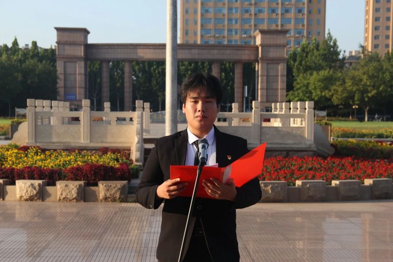 接下来,学院学生会青年代表第十五届学生会执行主席孟祥健做了国旗下的主题演讲。他号召同学们心怀理想,砥砺前行,在砥砺中坚守,在前行中蜕变。他呼吁同学们积极参加举办的各项活动,积极主动的去挖掘充满机遇的大学生活,做到关心国家大事,积极参与社会实践活动。同时希望同学们以国旗为引领,心怀理想,在这美好的大学时光里砥砺前行,在奋斗中书写青春的华章,在奉献中展现人生价值。