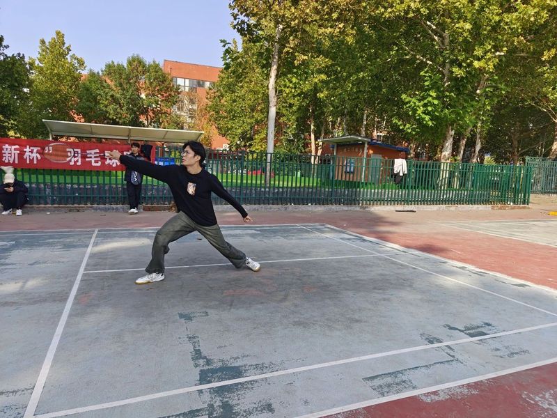在秋高气爽的季节里,我们迎来了“迎新杯”羽毛球赛。这个时节,天空格外湛蓝,阳光柔和而温暖,微风轻轻拂过,带来丝丝凉爽。