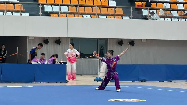 武术比赛不仅是一场技艺的较量,更是一场文化的交流与精神的洗礼。韩佳慧在长拳比赛中发挥稳定,拳脚生风,刚劲有力,斩获金牌。她自幼对武术有着浓厚的兴趣,习武10年,擅长长拳和剑术,是非物质文化螳螂拳的传承人。