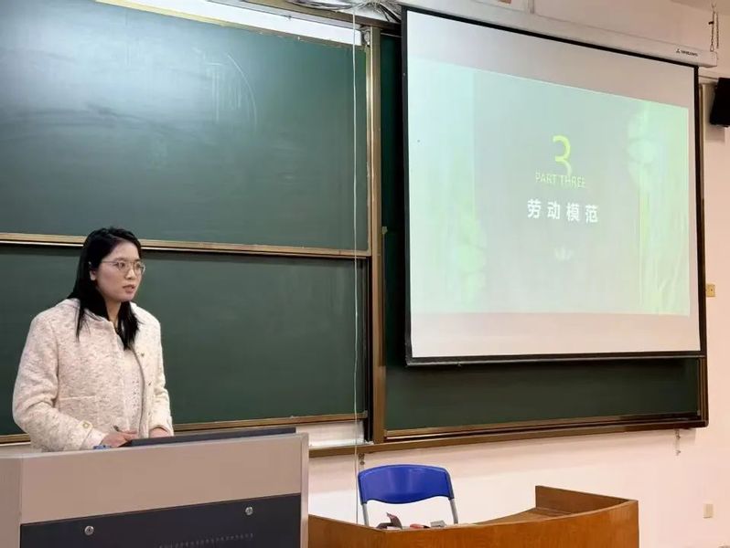 为了让同学们更直观地感受劳动的魅力,刘舒老师还分享了几位劳动模范和优秀校友的劳动故事。通过分享身边的实际经历,生动诠释了劳动的价值与内涵,为在场学生树立了榜样力量。