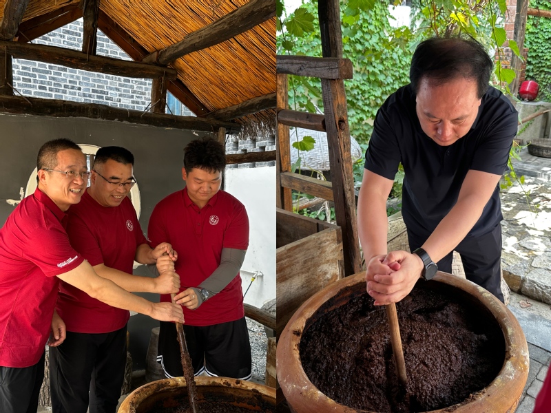 泰顺斋是一家承载着百年历史的老字号企业,是泰顺斋南肠的生产基地。泰顺斋食品有限公司总经理刘锋向我们介绍,南肠之所以闻名遐迩,关键在于其选材考究、工序严谨。通过了解,泰顺斋依然坚守着这份传统,经过刮肠、剁肉、拌馅、灌肠、晾晒、蒸煮六道复杂而精细的工序并与中草药结合,最终制成色香味俱全的南肠。这种南肠不仅营养丰富、香味浓郁,还具有蝇不叮、虫不蛀、久放不变质的神奇特点,被誉为“肴上肴”。通过技术员的讲解,队员们体验了制作工艺。