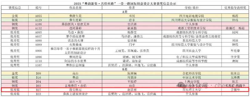 我院学子赵苡彬在赛前准备阶段,便在专业教师的指导下确立创作方向。她深入研读彝族传统服饰文化,从古老纹样、特色色彩中提取核心文化符号,同时结合现代设计的简约美学与实用需求,将传统元素与当代创意巧妙融合。最终,其参赛作品以鲜明的文化辨识度、流畅的视觉表达,精准诠释“丝路文化互鉴共生”的赛事主题,成功从众多优秀作品中突围,荣获赛事优秀奖。这一成绩不仅是对赵苡彬个人专业能力的肯定,更展现了我院学子在跨文化设计语境下的创新思维与文化传播意识。