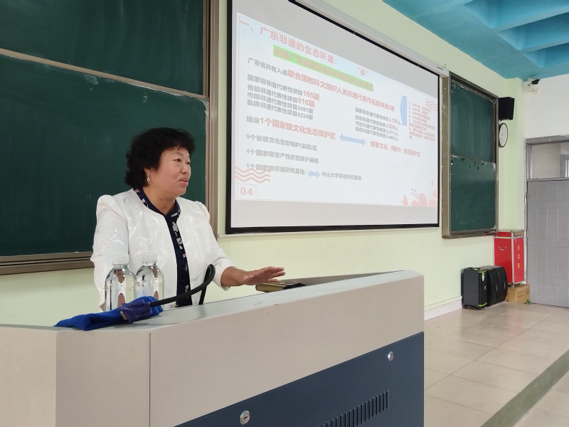 在专题报告环节,国家非物质文化遗产展示研究中心华南基地副主任陈杭教授以《广东院校非遗传承传播的创新实践》为题,分享了粤港澳大湾区高校在非遗领域的先进经验。她通过一系列生动案例,系统阐述了如何通过课程体系重构、数字化技术应用、跨界工作坊及社会创新项目,实现非遗在校园乃至社会的活态传承与广泛传播,为我院提供了宝贵的“他山之石”。