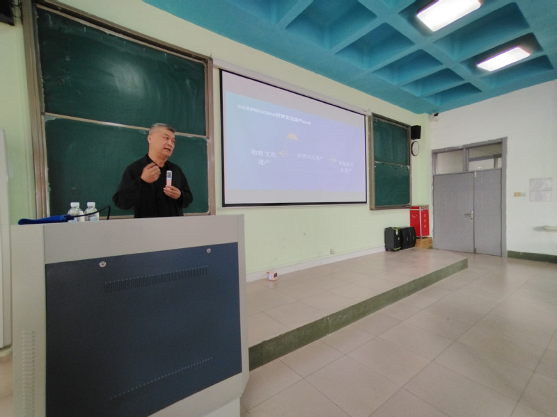 随后,文化和旅游部恭王府博物馆学术委员会副主任孙冬宁教授以《守护者·致匠心——非物质文化遗产的保护与传承》为题,带来一场高屋建瓴的学术讲座。他从非遗分类及内容、工作团队及业务职能、传统工艺分类保护的策展案例等三个方面,并结合我校陶琉丝特色,对黄河流域、大运河沿线的相关非遗进行了梳理。深刻剖析了“守护者”的文化使命与“匠心精神”在当代的价值内涵。他强调了“以研带展、以展促研、四展四研”的非遗策展工作特色,将传统工艺与现代设计深度融合,服务于当代生活。