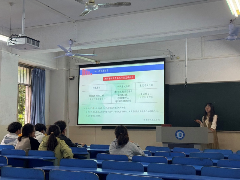 9月16日,学院纺织工程系副主任刘延松老师赴德州学院进行研究生招生宣传工作。在宣讲会上,刘延松老师简要介绍了学校校情、学院简介,详细介绍了2026年学院的学位点设置、科研实力、奖助政策和考试科目,并对德州学院学子积极的响应表示了感谢。