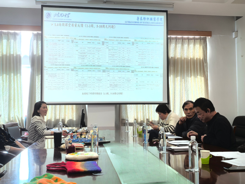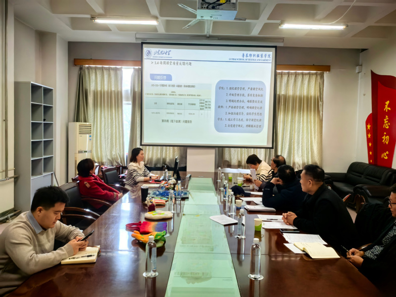 在听取学院总体工作汇报后,专家组随即对教学归档材料进行了专项审阅与细致评估。随后,与参会人员进行了深入座谈交流。服装系主任于丽华向专家组系统展示了富有创意的学生作品,双方并就此围绕“课程思政”的教学设计与课堂融合路径展开了富有建设性的探讨。专家组对学院本科教学工作和好的经验做法给予了充分肯定,并对课堂管理、专业建设等方面指明了方向,为学院扎实推进本科教育教学工作,持续深化教育教学改革提供了有力指导。