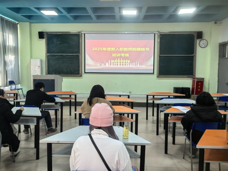考核现场秩序井然、氛围浓厚。徐迎红、赵壬海、路琪鑫三位新入职教师依次登台,进行了时长20分钟的脱稿板书试讲。三位教师精神饱满、教态自然,围绕授课主题构建了缜密的思维逻辑和清晰的教学框架,板书设计规范工整、重点突出,充分展现了学院青年教师扎实的专业素养、良好的教学潜质和积极向上的精神风貌。
