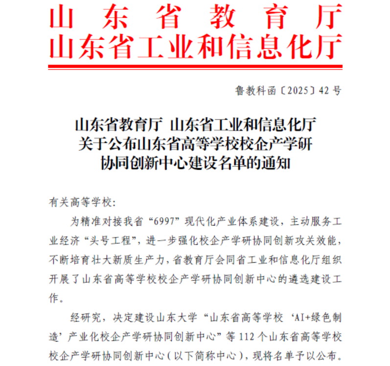 近日,山东省教育厅山东省工业和信息化厅公布了山东省高等学校校企产学研协同创新中心建设名单,我院申报的山东省高等学校纤维新材料与功能纺织品校企产学研协同创新中心室成功获批。