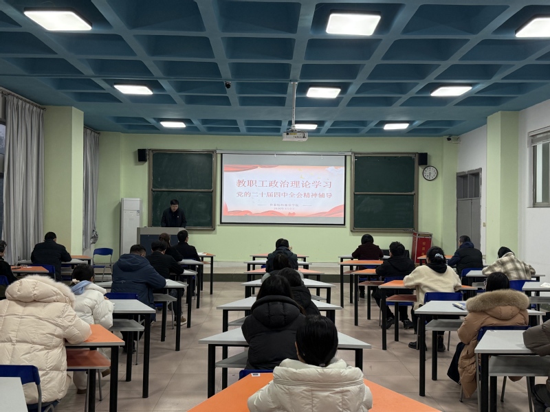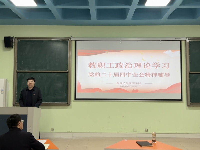 2026年3月5日下午,学院全体教职工在1号教学楼205室进行政治理论学习。学习《2026年国务院政府工作报告》,进行党的二十届四中全会精神辅导。会议由党委书记孙晓主持。