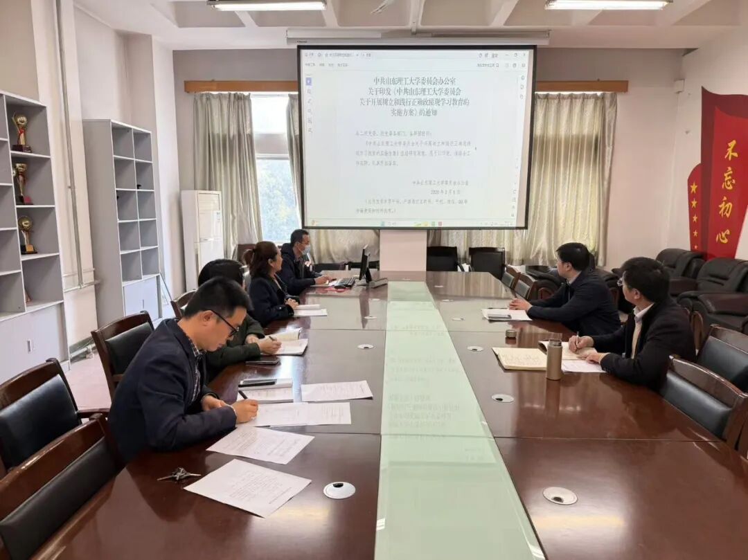 会上,与会人员集体学习了习近平总书记关于让愿担当、敢担当、善担当蔚然成风的重要论述,孙晓传达了学校党委常委会会议暨学校党建工作领导小组(扩大)会议精神和《中共山东理工大学委员会关于开展树立和践行正确政绩观学习教育的实施方案》有关要求。会议审议通过了学院树立和践行正确政绩观学习教育实施方案,并部署启动学院树立和践行正确政绩观学习教育的相关工作。