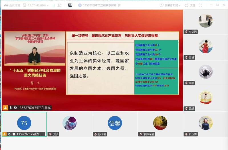 课程为中央党校经济学曹立教授主讲。她指出建设现代化产业体系是中国式现代化的物质技术基础,坚持把发展经济的着力点放在实体经济上,坚持智能化、绿色化、融合化方向,保持制造业合理比重,构建以先进制造业为骨干的现代化产业体系。重点包括优化提升传统产业、培育壮大新兴产业和未来产业、促进服务业优质高效发展、构建现代化基础设施体系;强调了加快高水平科技自立自强,引领发展新质生产力,统筹教育强国、科技强国、人才强国建设,提升国家创新体系整体效能,全面增强自主创新能力。重点包括加强原始创新和关键核心技术攻关、推动科技创新和产业创新深度融合、一体推进教育科技人才发展、深入推进数字中国建设。
