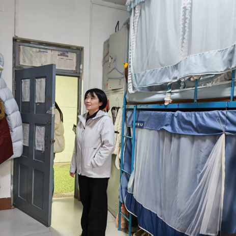 学院党委副书记朱婷婷与各年级辅导员深入学生宿舍,开展安全隐患专项排查行动。重点对宿舍用电安全、违规电器使用、线路私拉乱接、消防设施状况、内务卫生及门窗设施等情况进行逐一细致检查,对排查发现的问题现场督促整改,全力守护学生居住安全。