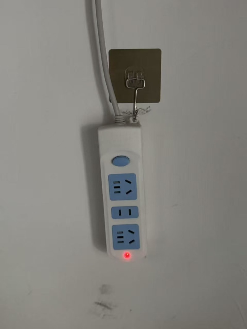 借助“一人一钩”的配置方式,一方面可以有效承载插排本体重量,避免使用过程中滑落;另一方面也便于将冗长的电源引线归拢缠绕,使床头区域更加整洁。此项安排实现了“定点安装、统一标准”的预期目标。