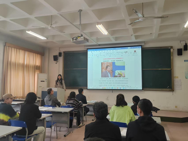 接着,孙语馨同志结合高校一线教师践行教育家精神的典型实例,领学了黄大年至诚报国、潜心育人,张桂梅扎根山区、坚守讲台,曲建武爱党爱教,淡泊名利的先进事迹。全体参会人员认真学习,汲取榜样力量,涵养高尚师德。