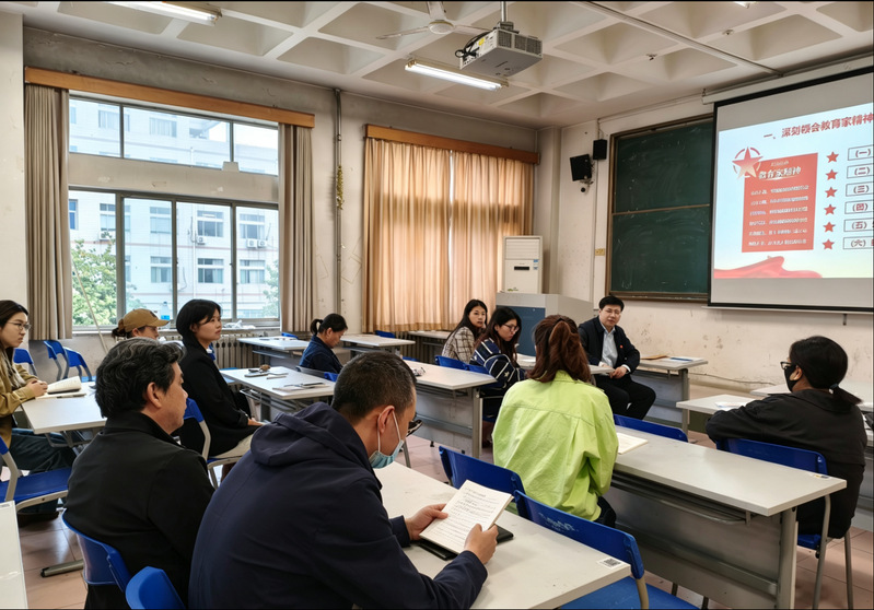 交流研讨环节,参会教师紧扣“教育家精神” 核心,结合专业特点,围绕课堂教学提质、学生日常管理、暖心关爱学生等重点内容深入交流研讨。张玉青、宋金英等同志针对AI技术与教育的融合、学生手机依赖、课堂专注力不足等问题提出从优化教学方式入手,提升课堂吸引力与实效性,合理排布教学任务,引导学生回归课堂、专注学习。大家纷纷表示,将以先进榜样为标杆,认真践行教育家精神,立足本职岗位,精进教学能力,规范班级管理,以责任与爱心履职尽责。